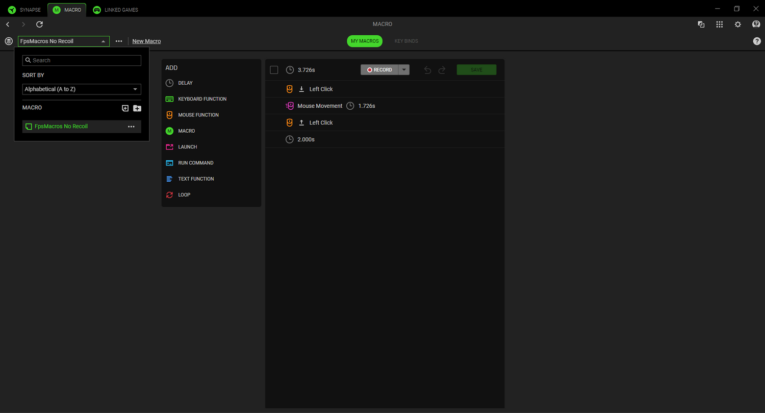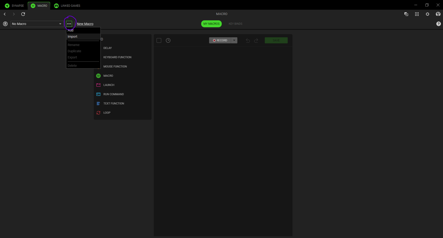 Open Razer Synapse and click on the MACRO tab.